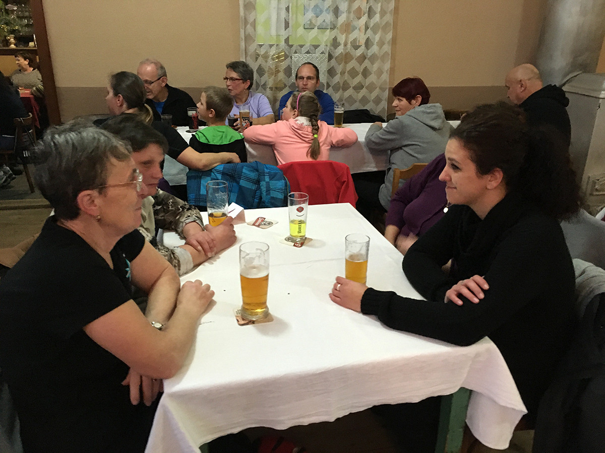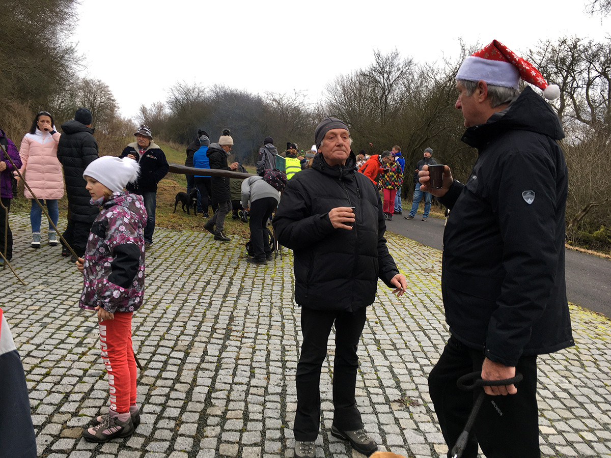Ve dvanáct hodin v pátek 27. 12. 2019 se u hostince U Křížů sešlo 34 lidi a tři psi. Všichni jsme natěšení vyrazili směrem na Mladý Smolivec, kde na nás u čekárny na návsi čekalo 7 dalších. Všichni jsme se společně vydali do Starého Smolivce po nejfrekventovanější komunikaci pochodu. Pravidelně se na tomto úseku míjíme se 2 autobusy a několika auty, které mají problém předjet náš dlouhý štrůdl pochoďáků. Vždy si oddechnu, když všichni ve zdraví dorazíme na cyklostezku a tam už nehrozí nebezpečí od chvátajících řidičů. U Anděla jsme provedli poslední hromadné focení a při sčítání účastníků pochodu jsme mohli přičíst dalších 22 nadšenců procházky v přírodě. U odpočívadla Bitvy na Vraždě na nás čekal Honza, rozdělaný oheň, svařák, čaj a dalších 15 pěšáků. Celkem se tak sedmého ročníku pochodu z obce do obce účastnilo 78 nadšenců zdravého pohybu. Po krátkém občerstvení se pomalu skupinky rozcházely, některé po směru trasy, do Budislavic, některé se vrátily domů a některé se po cestě odklonily jiným směrem. Což vůbec nevadí, neboť o tom tento pochod je. Stačí se někde přidat či projít jen kousek trasy. Důležité je nesedět doma a udělat něco pro zdraví. Kdo dorazil do Budislavic, měl možnost občerstvit se česnečkou od Marušky Křížů, kterou pro nás každoročně připravuje a my jí za to děkujeme, protože je vždy výborná.
