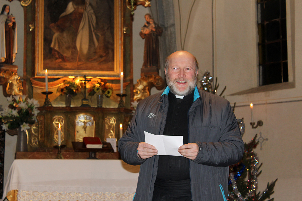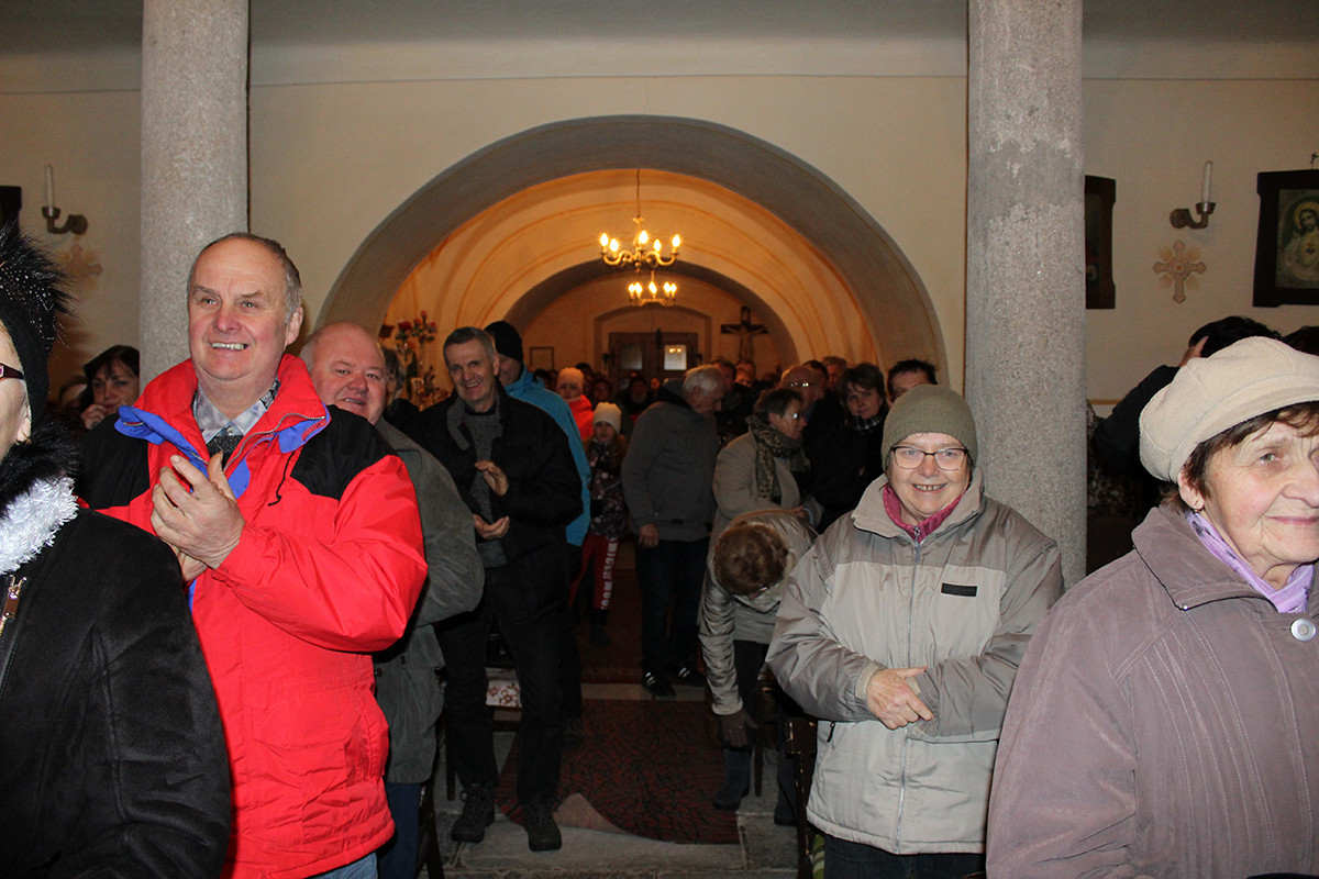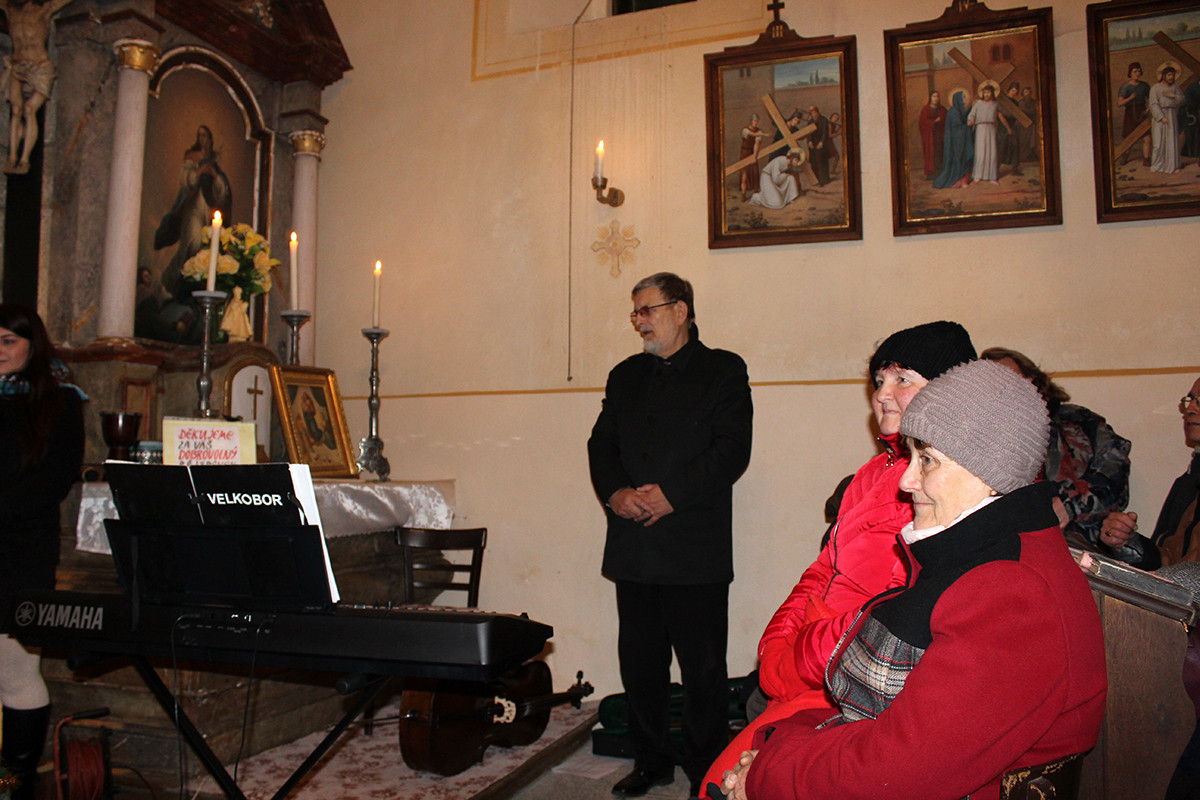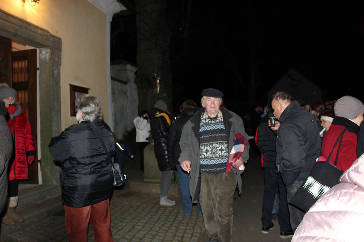 Po zaznění posledních tónů se ujal slova pan Kulíšek, který poděkoval a popřál jen to nejlepší do nového roku všem příchozím i účinkujícím. K přání se v úplném závěru přidal i místostarosta obce Honza Spour, který ještě předal dárečky účinkujícím a pozval přítomné na občerstvení, které před kostelem připravili místní hasiči.