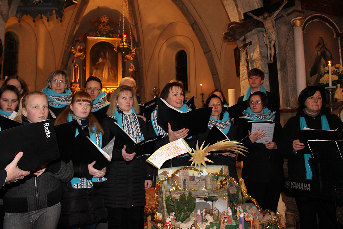 Kolem půl šesté večer se před kostelem začaly scházet první hloučky lidí, kteří přišli nasát nádhernou vánoční atmosféru spojenou s milým setkáním se svými sousedy, přáteli a známými. V 18 hodin byl vánočně vyzdobený kostel zcela zaplněn návštěvníky a tak nic nebránilo tomu, aby pan Kulíšek, hlavní pořadatel, přivítal všechny příchozí a připomněl všem důvod setkání a především pravý smysl Vánoc. Dále uvítal pěvecký sbor Velkobor v čele se sbormistryní Radkou Kočí a nového duchovního správce pátera Špiříka z Nepomuka, kterému předal slovo. Ten všechny přítomné přivítal a přečetl úryvek z Bible o narození Krista. Poté již slovo převzal pěvecký sbor Velkobor, návštěvníci vyslechli na dvacet koled a vánočních písní, které byly rozděleny do dvou částí. V první polovině zazněly například píseň Bim bam, anglická koleda Dobrý král Václav, nebo vánoční koleda Jméno zná i král. Překvapením, které připravil také pan Kulíšek, bylo v tomto roce zavedení nové tradice, a sice vystoupení místních dětí. Letos vystoupili Filip a Adélka Konvářovi, kteří zahráli na harmoniku a na příčnou flétnu a odměnou jim byl zasloužený potlesk. Dále navázal opět Velkobor s druhou desítkou písní, ve které zazněla Neckářova Půlnoční v podání jediného muže souboru a také Modlitba známá z pohádky Anděl Páně 2. Velkobor měl stejně jako sourozenci Konvářovi velký úspěch, dokonce si návštěvníci budislavického kostela vyžádali u sboru přídavek, který stejně jako všechny ostatní písně zahřál u srdce.