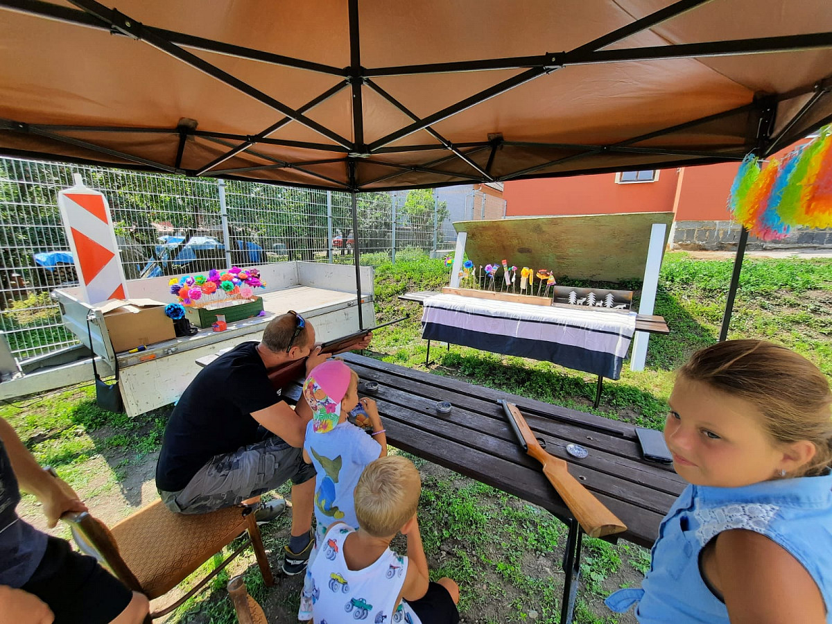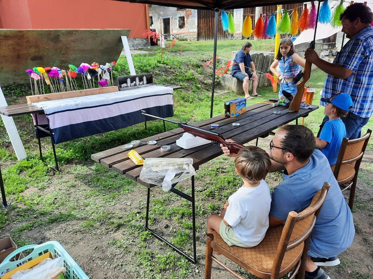 I když na sobotní večerní zábavu tolika tepla nebylo, na parádní tancovačku s přáteli u moku piva to vůbec nevadilo. V neděli nám to počasí vynahradilo. V dopoledních hodinách jsme se sešli na hřišti u domácí hospůdky, abychom připravili pouťové atrakce pro děti, které přišly v hojném počtu po výborném obědu u svých babiček a prababiček. Letos opět nechyběl skákací hrad (za což děkujeme za zapůjčení OÚ Mladý Smolivec), dále pak domácí střelnice s vlastnoručně vyrobenými růžemi našich členů a členek a balonky s překvapením (za dary také děkujeme OÚ). Všem kdo přiložili ruku k pořádání akce, ať už při sobotní zábavě, nebo nedělnímu dni, patří veliké díky. Na příští rok se už teď můžete těšit na novinky, které se nám vnukly do hlav, a které se pokusíme zrealizovat.