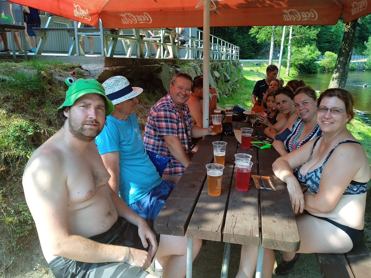 Celé čtyři dny nám přálo luxusní počasí a ten, kdo nepoužil opalovací krém, trochu trpěl. Koupání v řece bylo krásně osvěžující a i ti největší zmrzlíci, se letos koupali. Bez úhony se nám podařilo sjet i všech 11 jezů, přenášel se pouze jeden, nesjízdný.