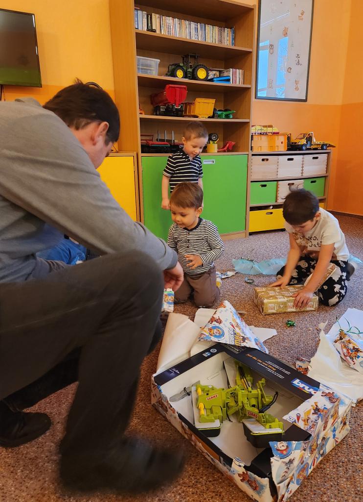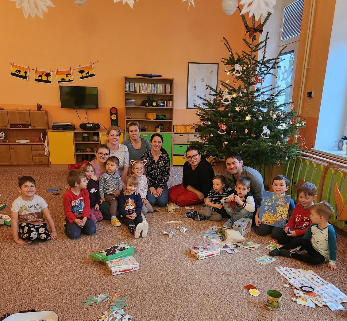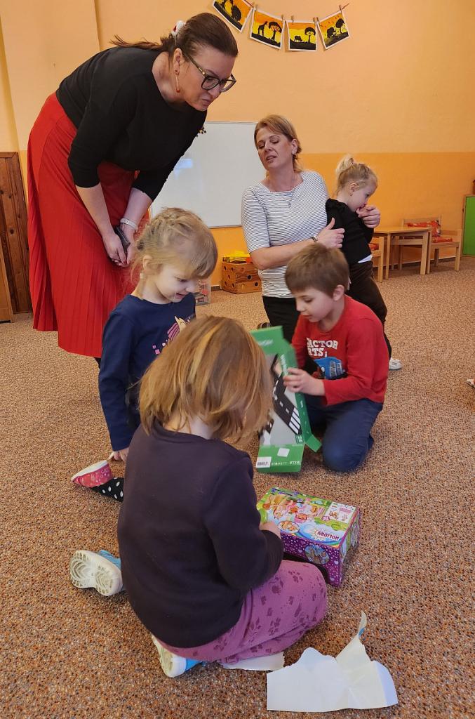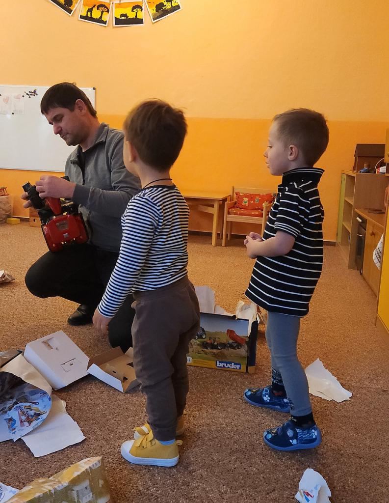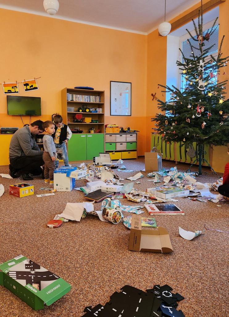 Pan starosta společně s paní místostarostkou a účetní, zavítali do školky pozdravit děti a kouknout, co dětem ježíšek nadělil.
