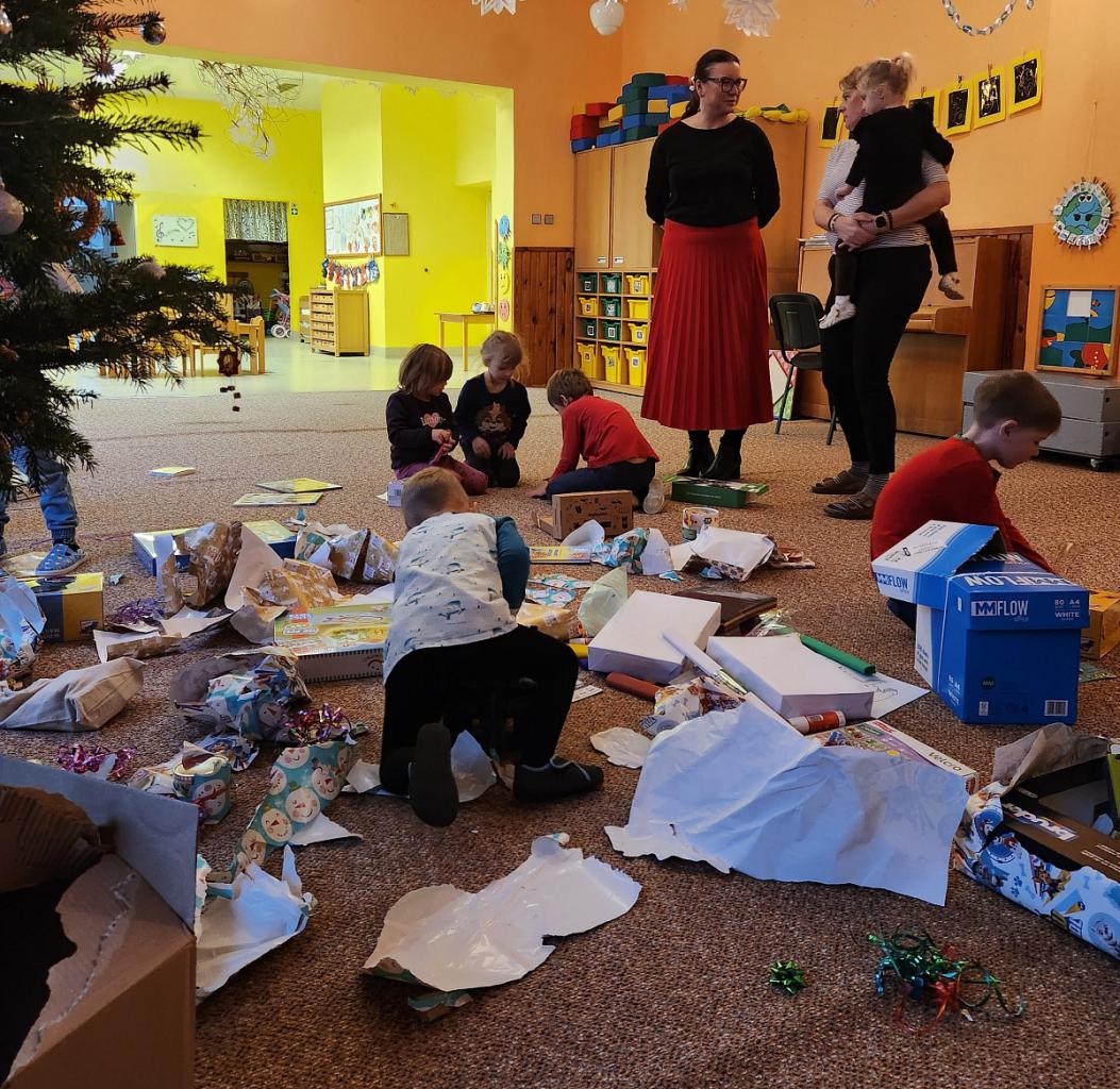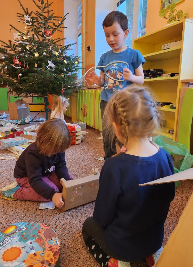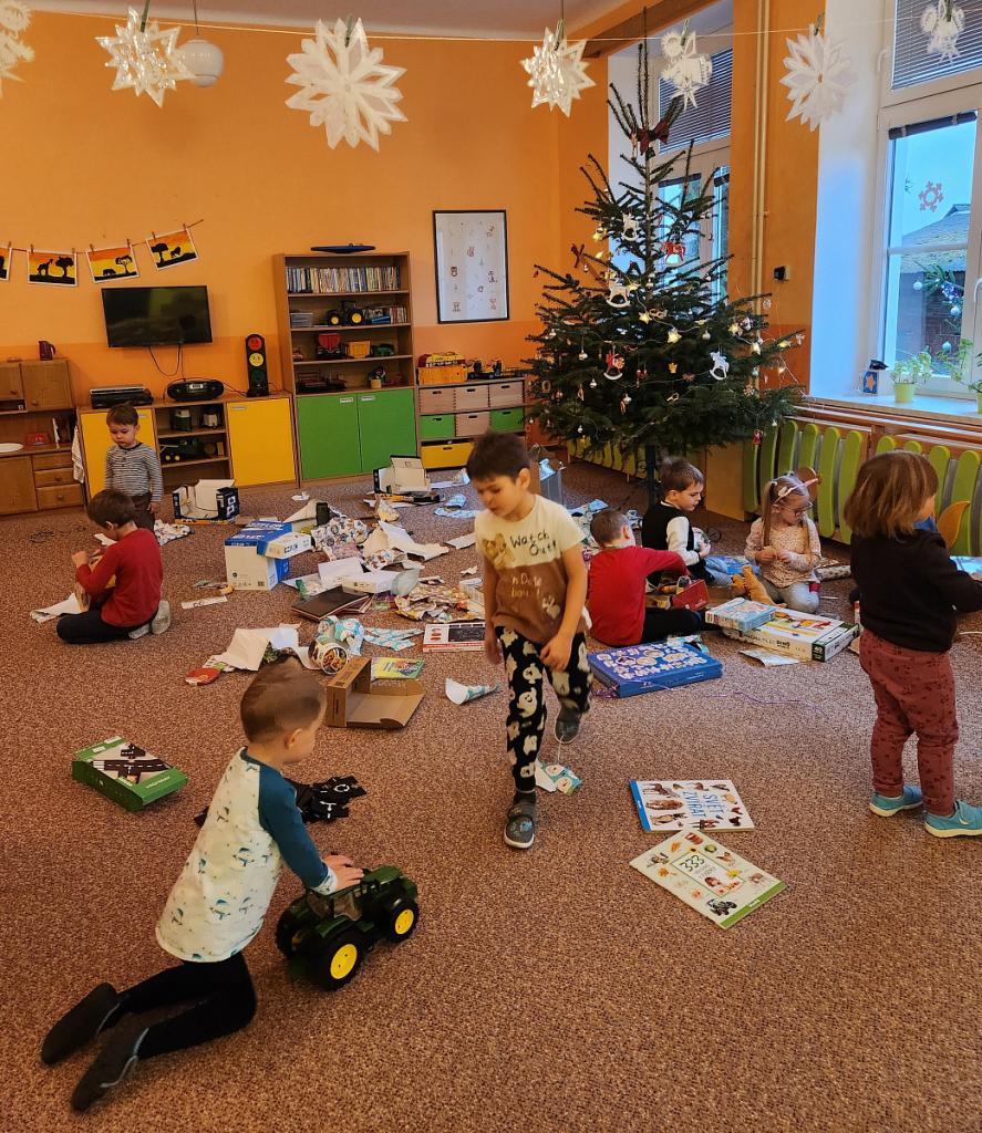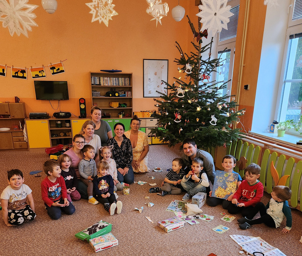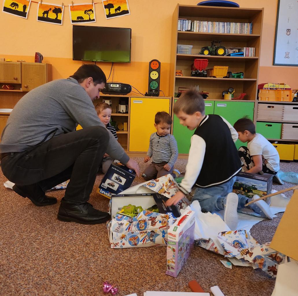Pan starosta společně s paní místostarostkou a účetní, zavítali do školky pozdravit děti a kouknout, co dětem ježíšek nadělil.
