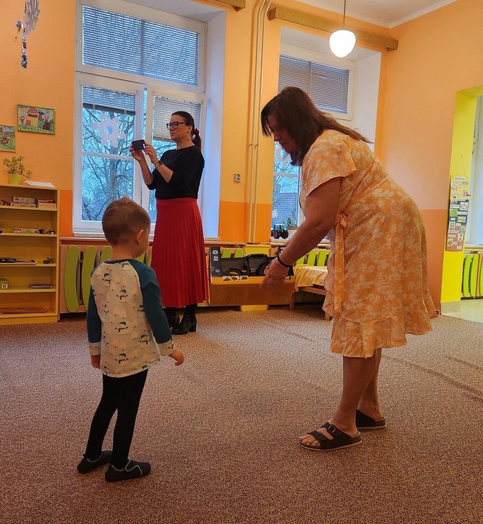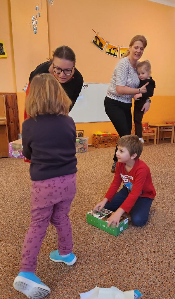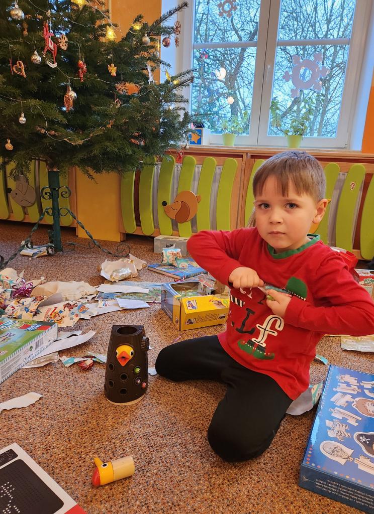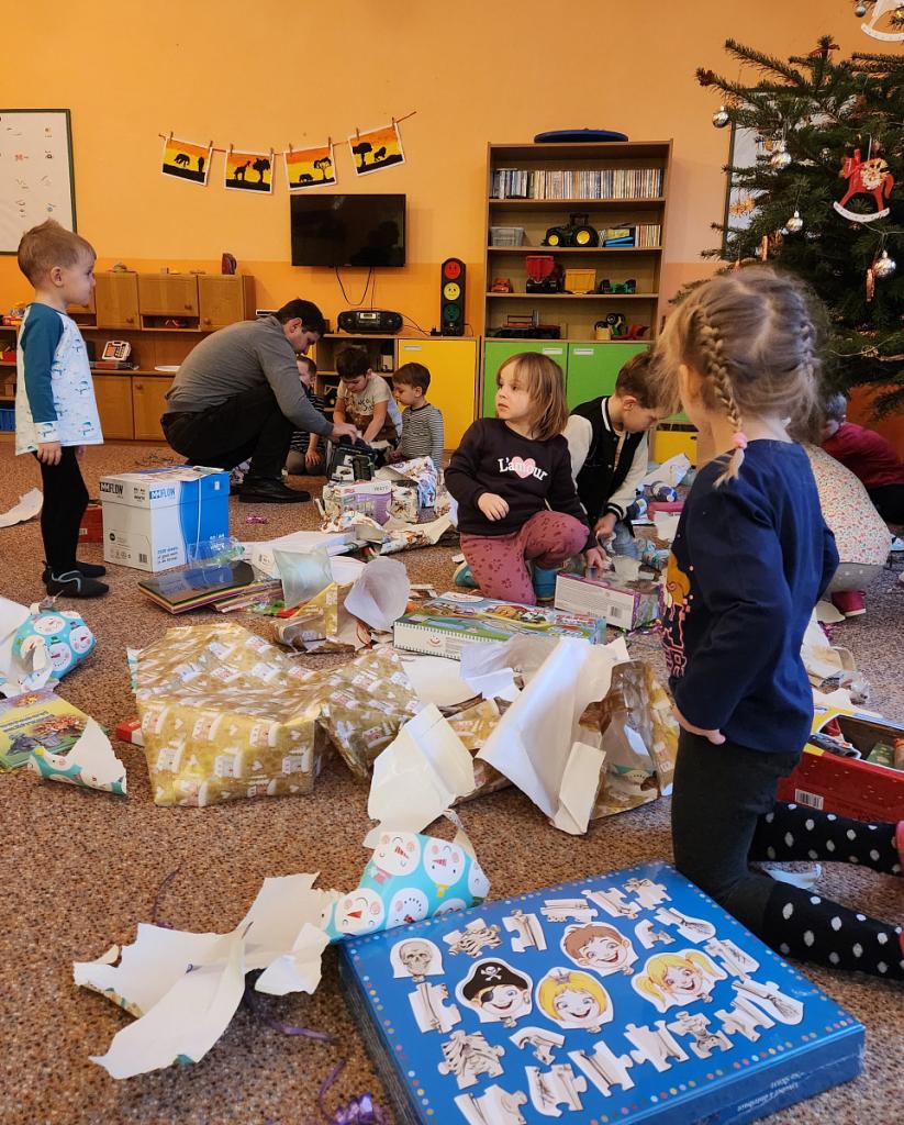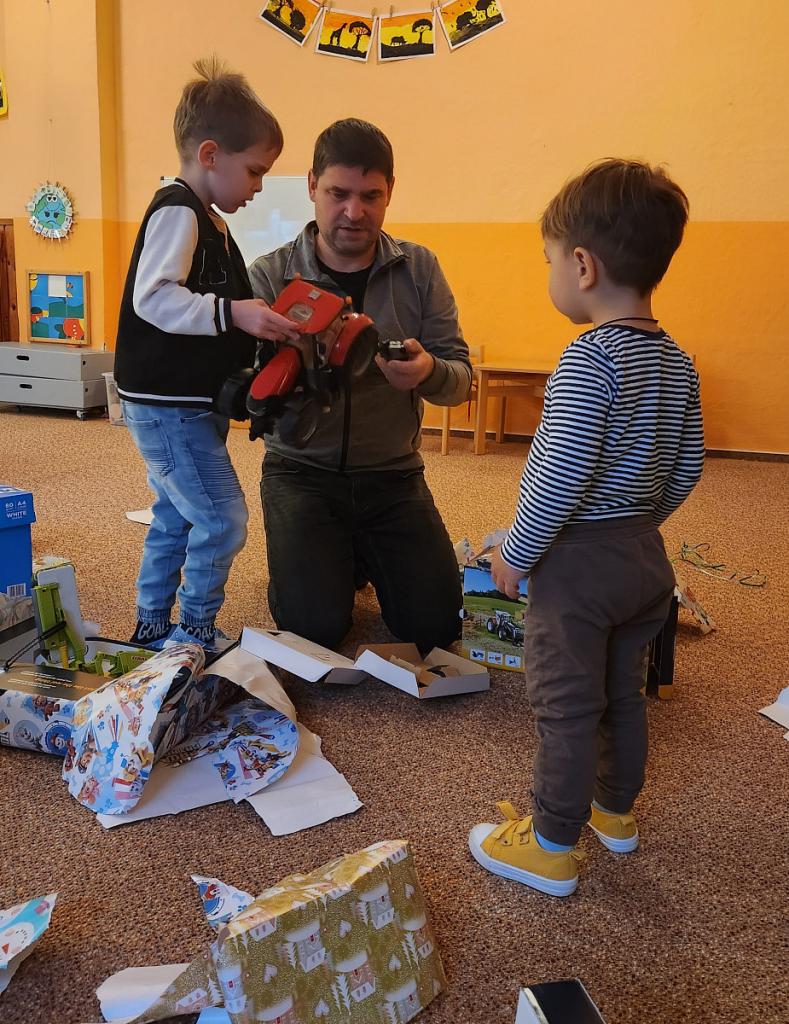Pan starosta společně s paní místostarostkou a účetní, zavítali do školky pozdravit děti a kouknout, co dětem ježíšek nadělil.