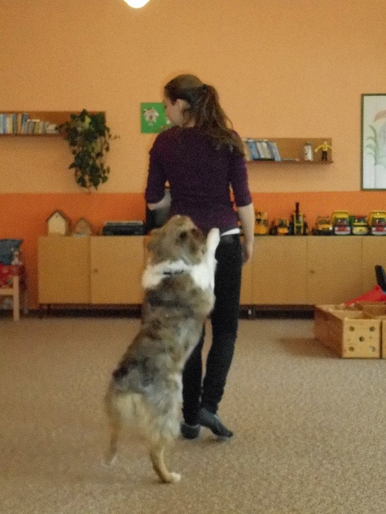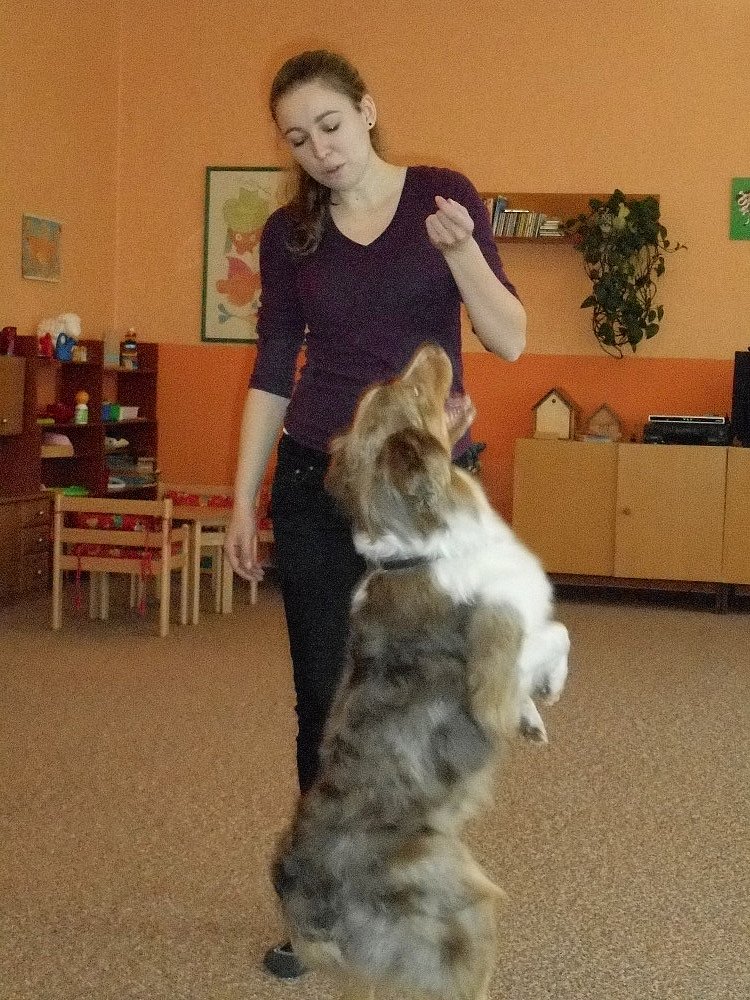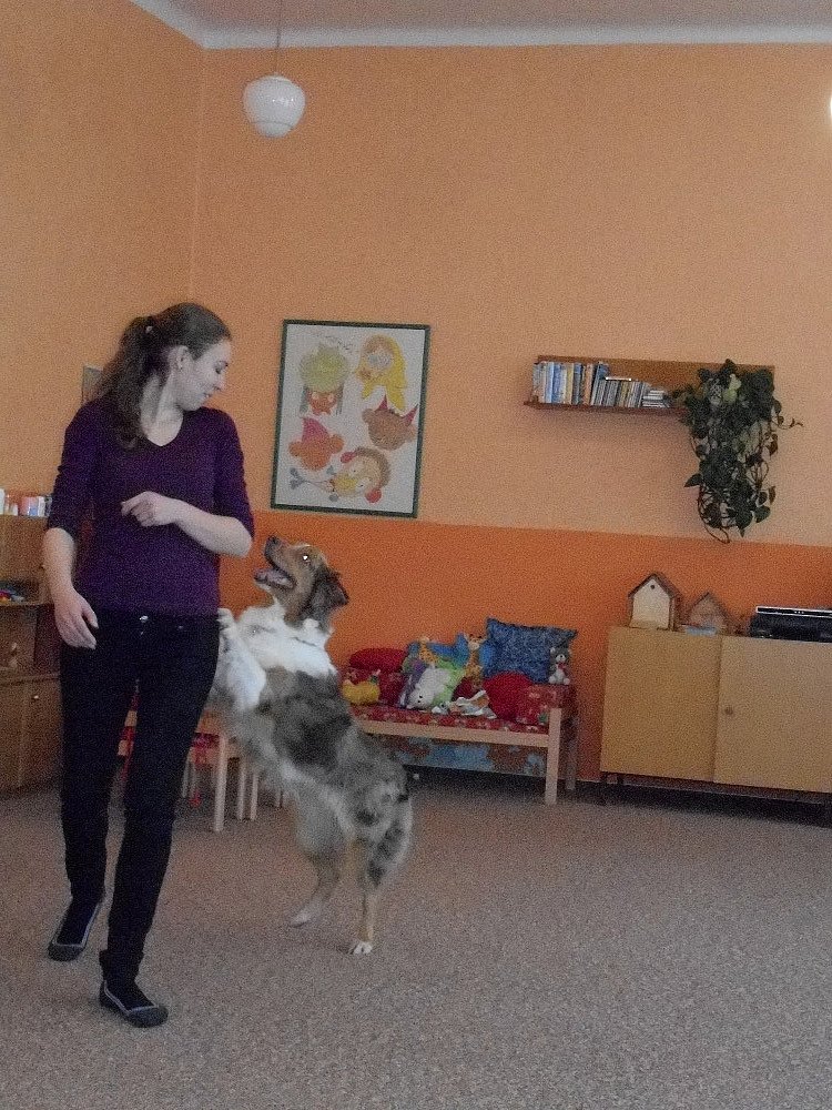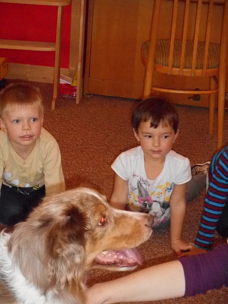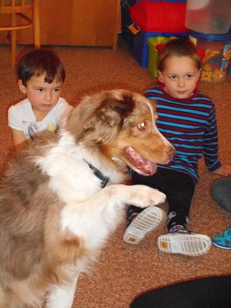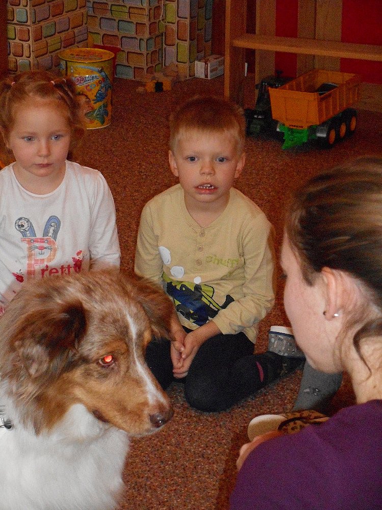 Ve středu 25. 11. k nám přijela do školky slečna V. Gregorová nám ukázat, co všechno je možné pejsky naučit, pejsci tančili při hudbě.