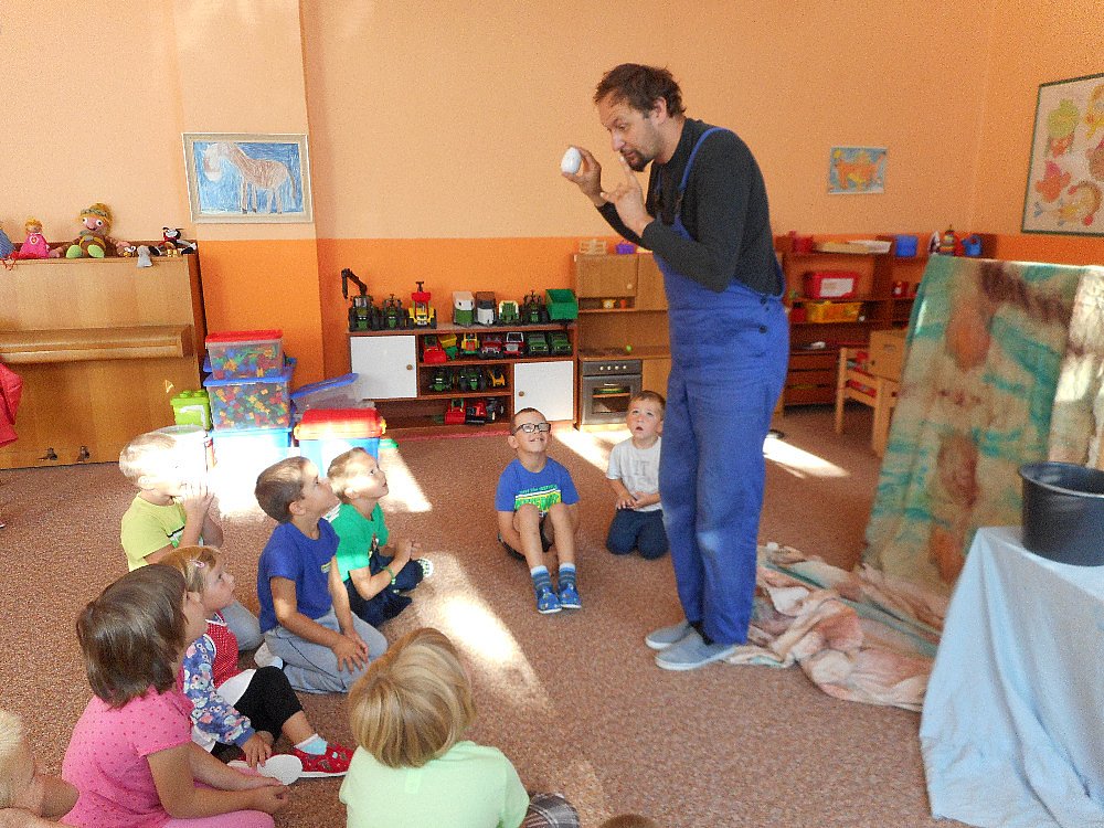 Sotva jsme se ve školce trochu rozkoukali po prázdninách, už k nám 6. 9. přijelo divadlo s pohádkou Liška a vlk.
