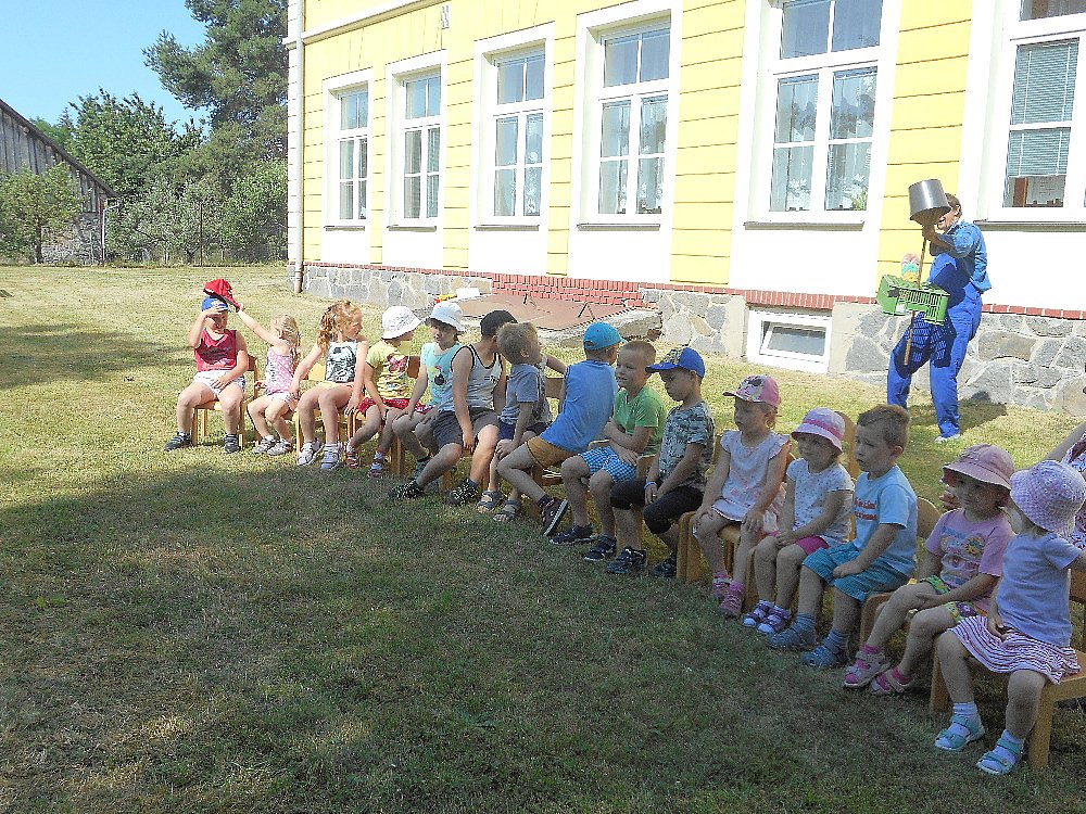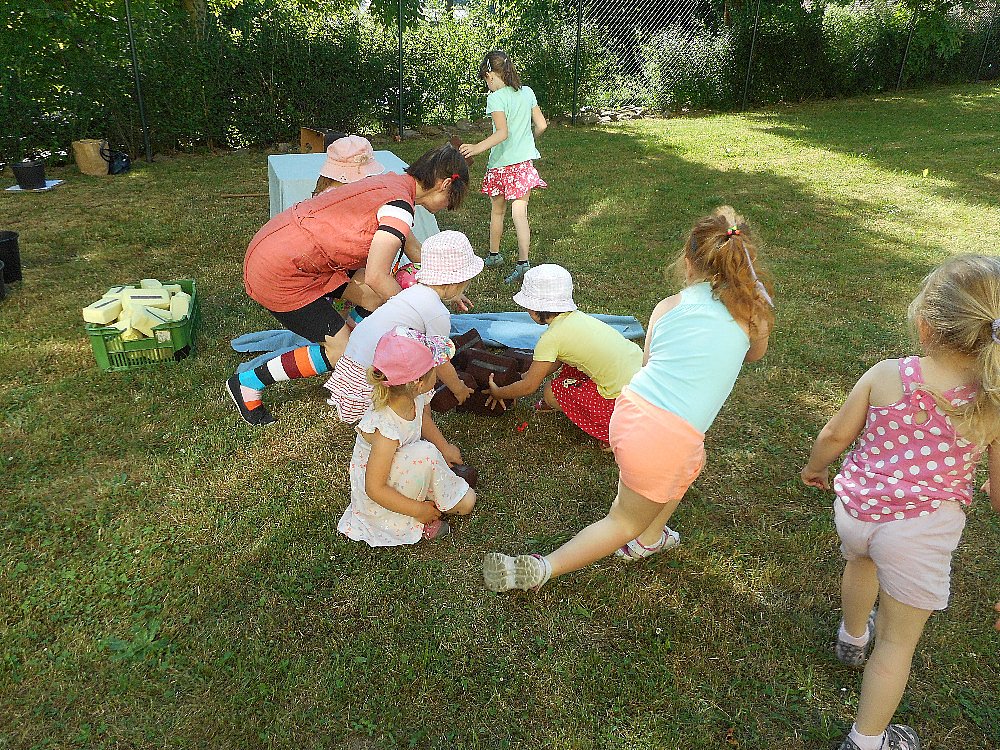 Divadlo ve kterém se tři míče proměnily ve tři prasátka a zlý vlk, je chtěl sežrat.