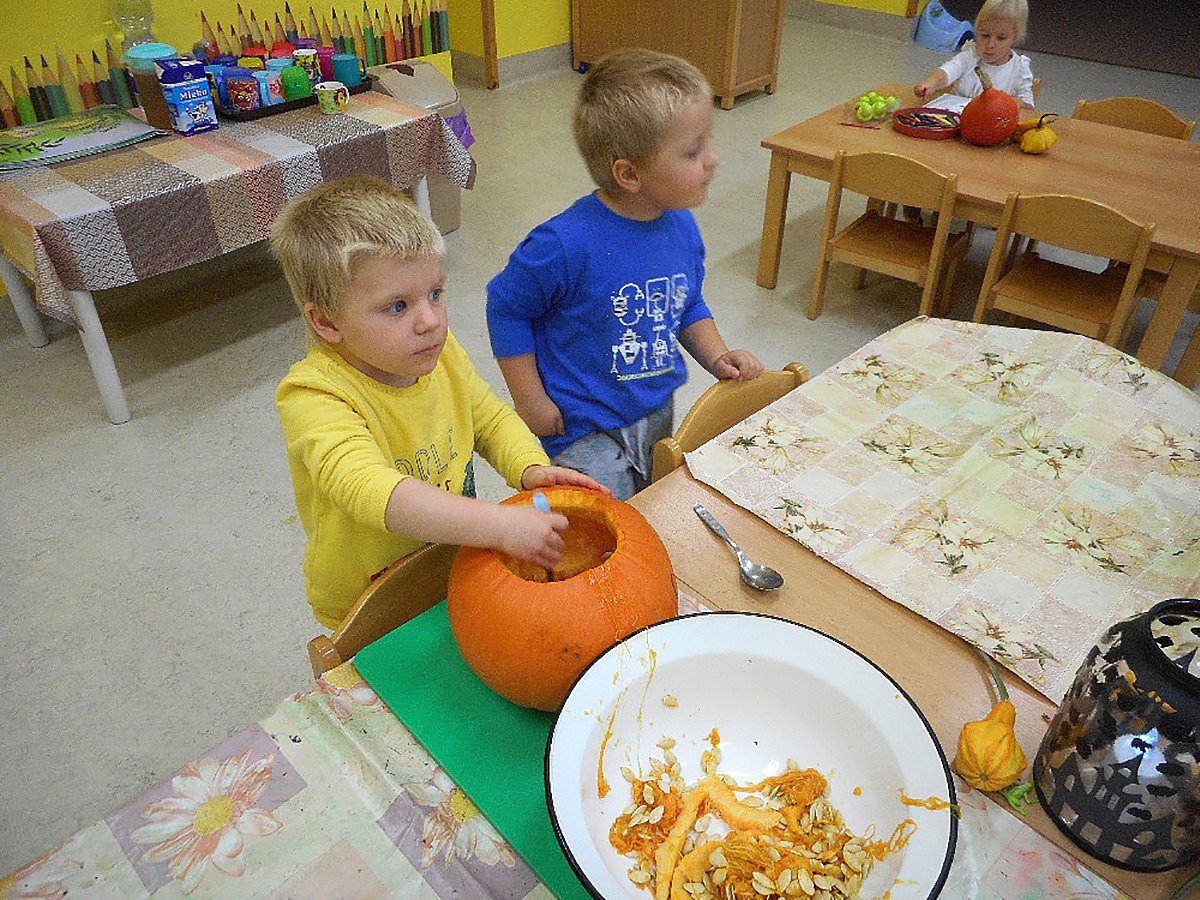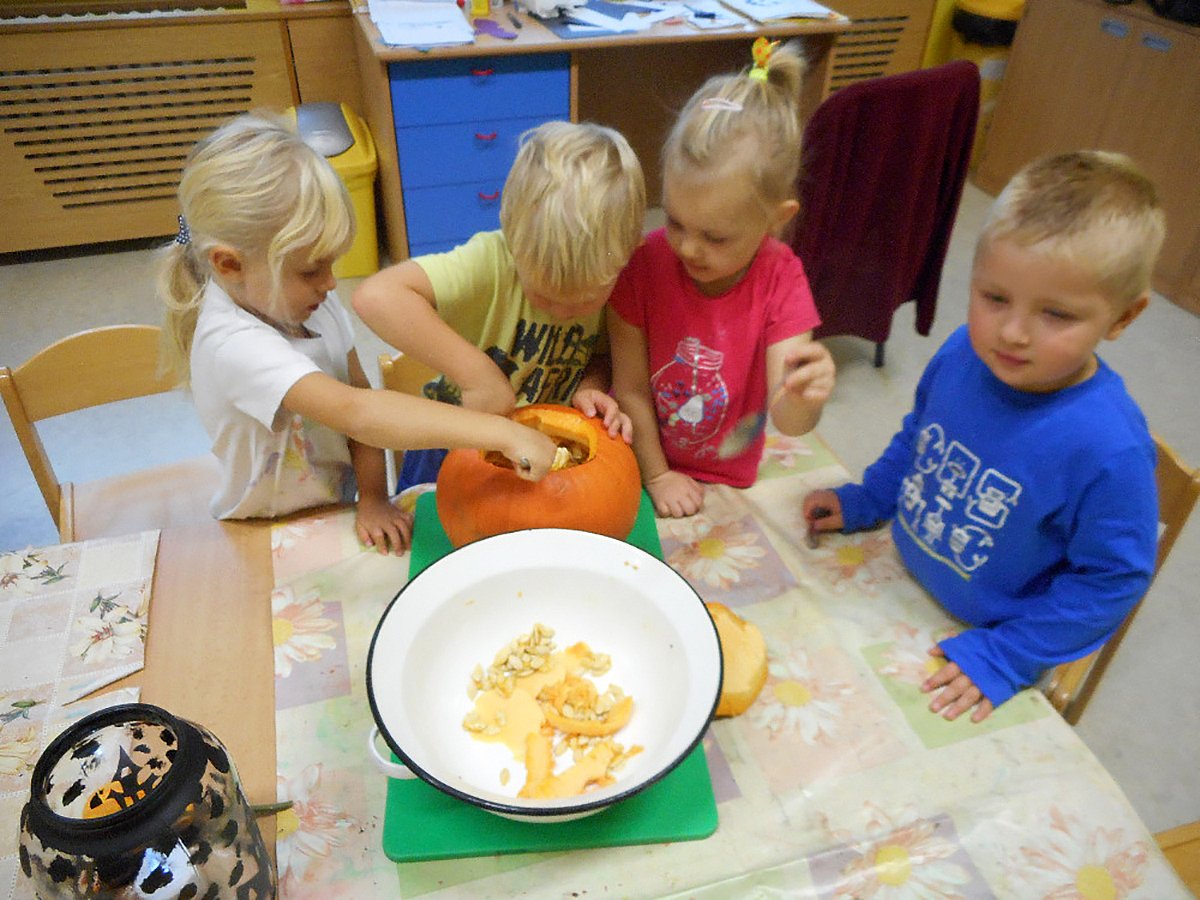 Každoročně za námi do školky chodí rodiče a společně s dětmi dlabeme dýně