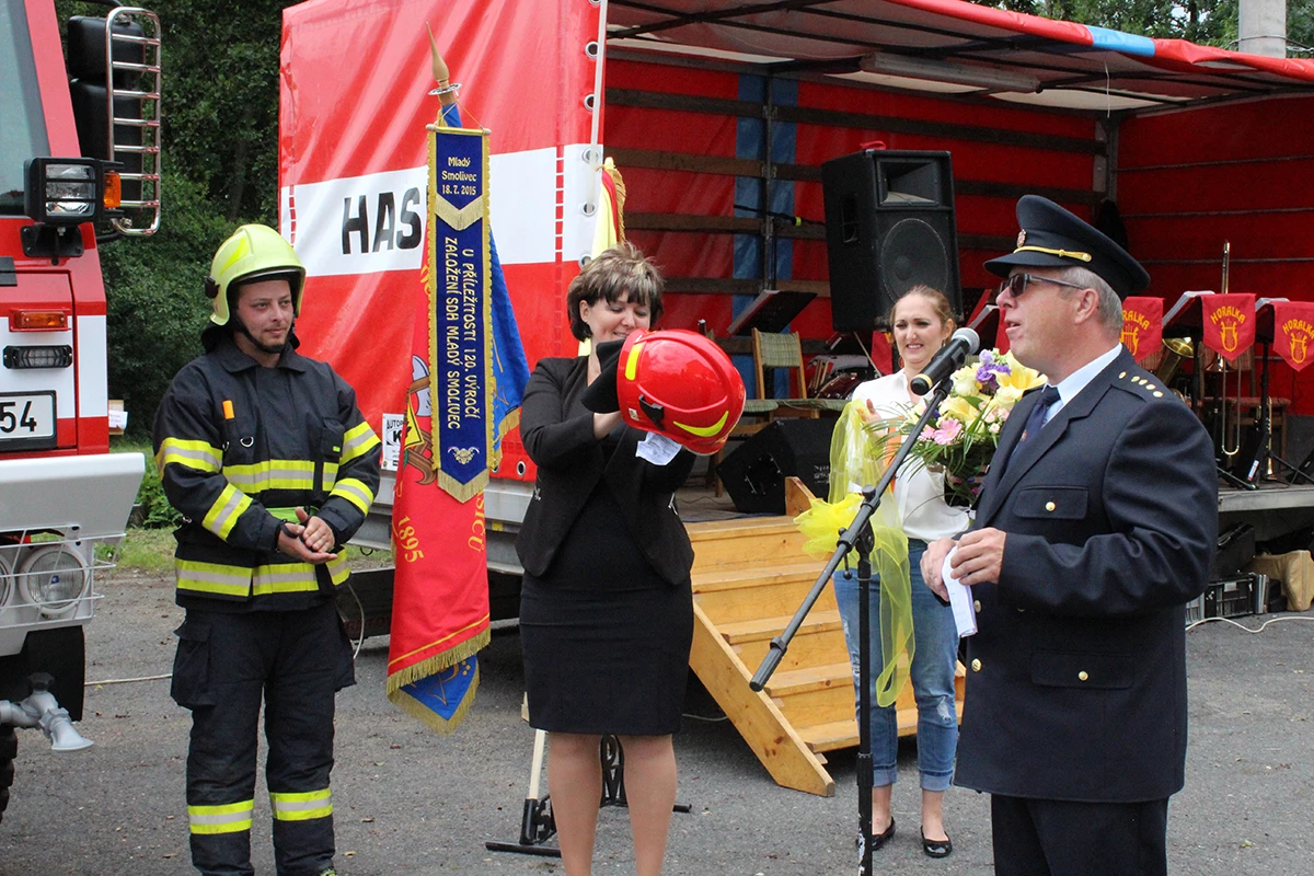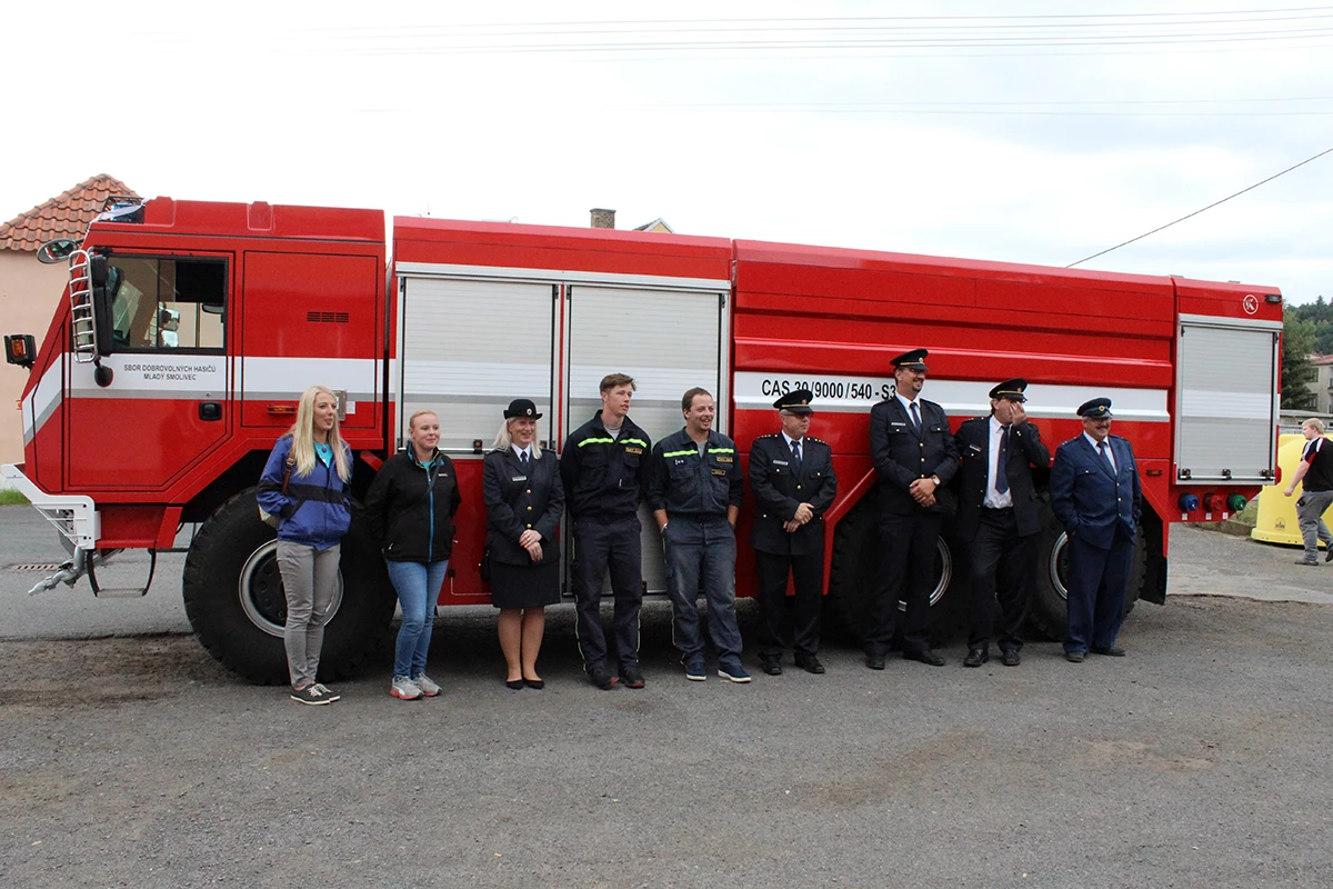 Hasiči obdrželi tři nové dopravní prostředky. Dopravní automobil značky Mercedes Benz s přívěsem značky Agados a velkoobjemovou cisternovou stříkačku značky TATRA 815 -7. Hlavním dodavatelem této techniky byla firma KOBIT, spol. s r.o. Slavnostní předávání začalo úderem druhé hodiny a účastnilo se ho přes stovku pozvaných hostů i místních občanů. Celým odpolednem nás provázela Veronika Kubová. Na slavnosti jsem měla možnost nejprve promluvit já a předat tak novou techniku našim hasičům. Snažila jsem se všechny přítomné seznámit s celým příběhem získání této techniky a všem připomenout význam, který pro nás tento projekt má a jaké finanční prostředky na něj byly vynaloženy. Poté se slova ujal Miroslav Šustr, zastupitel obce a člen výjezdové jednotky. Ocenil nové dopravní prostředky, které výjezdová jednotka získala díky prostředkům EU a Obci Mladý Smolivec a poděkoval za spolupráci s obcí. Poté došlo ke slavnostnímu svěcení vozů, kterého se ujal páter Robert Konrad Paruszewski. Obřad, který si pro naše automobily připravil, byl velice milý a příjemný. Páter Paruszewski vyzdvihl hasiče, kteří sice získali novou techniku, ale tím získali pracovní nástroj, se kterým často musí nasazovat vlastní životy za záchranu životů druhých. Po vysvěcení vozů pozdravil všechny přítomné brigádní generál Ing. František Pavlas. Ve své řeči vysvětlil význam hasičské techniky i v tak malých výjezdových jednotkách, zmínil význam dobrovolných hasičů a jejich přínos společnosti a v neposlední řadě se snažil všem přítomným sdělit, že techniku nezískali pouze hasiči výjezdové jednotky, ale že techniku předně získali občané našich obcí a blízkého okolí, kteří z tohoto projektu a nákupu techniky budou mít největší užitek. Zvýší se totiž dostupnost hasičů při krizových situacích. V závěru slavnosti získaly naše nové dopravní prostředky svá jména, Tatra 815 -7 – „Evík“, Mercedes Benz – „Embéčko“ a přívěs Agados – „Bobík“. Přítomní si mohli novou techniku prohlédnout a k vidění byla i stará technika. Nejen smolivecká CASka „Mates“, ale všechny Avie našich jednotek a samozřejmě nechyběli radošičtí hasiči se svou starou koňmi taženou stříkačkou, kterou doprovázeli v dobových kostýmech.