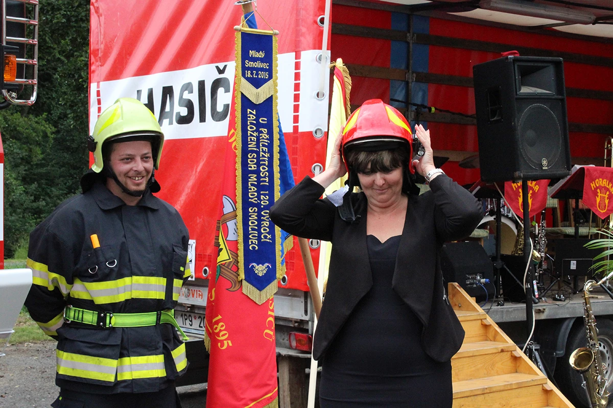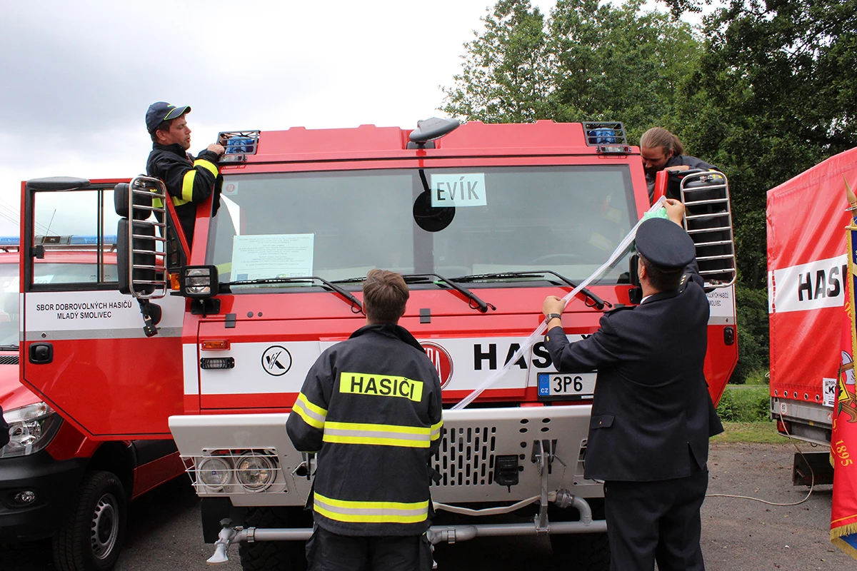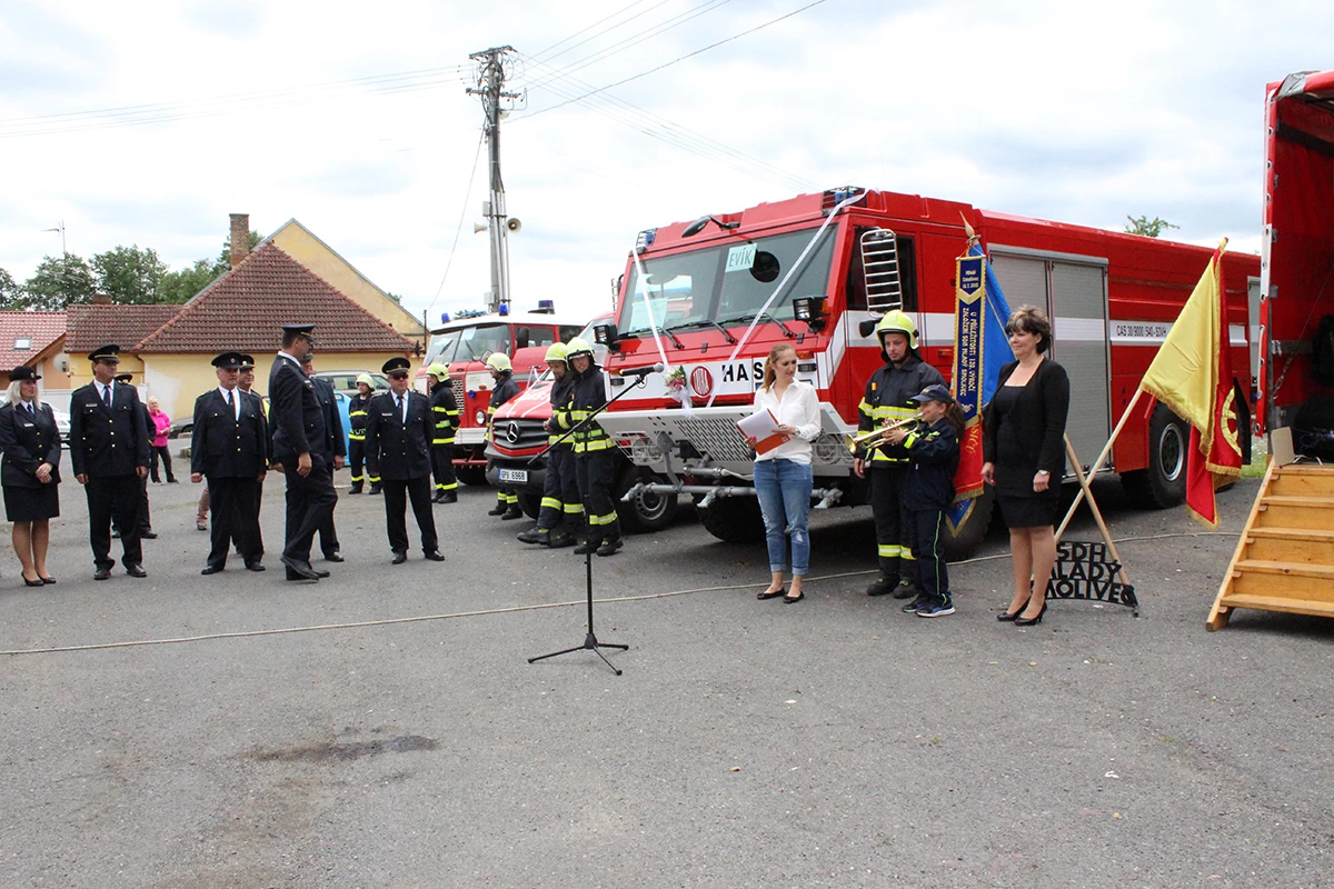 Hasiči obdrželi tři nové dopravní prostředky. Dopravní automobil značky Mercedes Benz s přívěsem značky Agados a velkoobjemovou cisternovou stříkačku značky TATRA 815 -7. Hlavním dodavatelem této techniky byla firma KOBIT, spol. s r.o. Slavnostní předávání začalo úderem druhé hodiny a účastnilo se ho přes stovku pozvaných hostů i místních občanů. Celým odpolednem nás provázela Veronika Kubová. Na slavnosti jsem měla možnost nejprve promluvit já a předat tak novou techniku našim hasičům. Snažila jsem se všechny přítomné seznámit s celým příběhem získání této techniky a všem připomenout význam, který pro nás tento projekt má a jaké finanční prostředky na něj byly vynaloženy. Poté se slova ujal Miroslav Šustr, zastupitel obce a člen výjezdové jednotky. Ocenil nové dopravní prostředky, které výjezdová jednotka získala díky prostředkům EU a Obci Mladý Smolivec a poděkoval za spolupráci s obcí. Poté došlo ke slavnostnímu svěcení vozů, kterého se ujal páter Robert Konrad Paruszewski. Obřad, který si pro naše automobily připravil, byl velice milý a příjemný. Páter Paruszewski vyzdvihl hasiče, kteří sice získali novou techniku, ale tím získali pracovní nástroj, se kterým často musí nasazovat vlastní životy za záchranu životů druhých. Po vysvěcení vozů pozdravil všechny přítomné brigádní generál Ing. František Pavlas. Ve své řeči vysvětlil význam hasičské techniky i v tak malých výjezdových jednotkách, zmínil význam dobrovolných hasičů a jejich přínos společnosti a v neposlední řadě se snažil všem přítomným sdělit, že techniku nezískali pouze hasiči výjezdové jednotky, ale že techniku předně získali občané našich obcí a blízkého okolí, kteří z tohoto projektu a nákupu techniky budou mít největší užitek. Zvýší se totiž dostupnost hasičů při krizových situacích. V závěru slavnosti získaly naše nové dopravní prostředky svá jména, Tatra 815 -7 – „Evík“, Mercedes Benz – „Embéčko“ a přívěs Agados – „Bobík“. Přítomní si mohli novou techniku prohlédnout a k vidění byla i stará technika. Nejen smolivecká CASka „Mates“, ale všechny Avie našich jednotek a samozřejmě nechyběli radošičtí hasiči se svou starou koňmi taženou stříkačkou, kterou doprovázeli v dobových kostýmech.