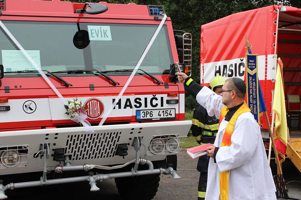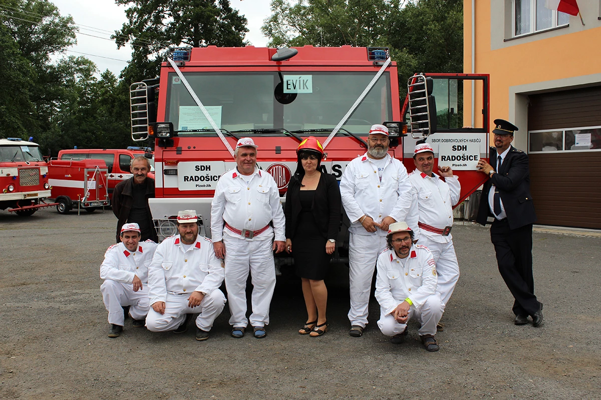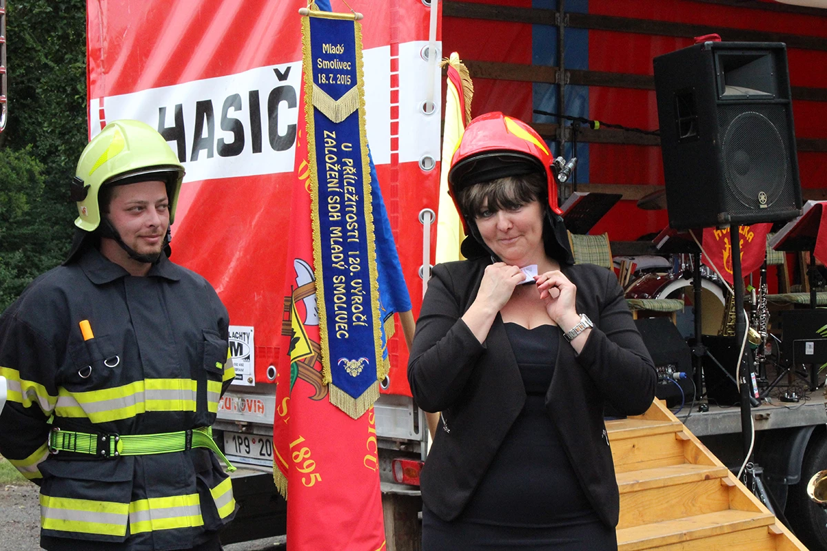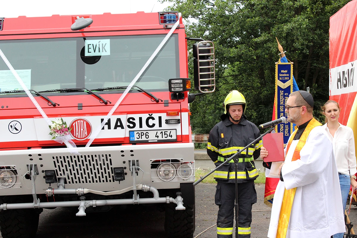 Hasiči obdrželi tři nové dopravní prostředky. Dopravní automobil značky Mercedes Benz s přívěsem značky Agados a velkoobjemovou cisternovou stříkačku značky TATRA 815 -7. Hlavním dodavatelem této techniky byla firma KOBIT, spol. s r.o. Slavnostní předávání začalo úderem druhé hodiny a účastnilo se ho přes stovku pozvaných hostů i místních občanů. Celým odpolednem nás provázela Veronika Kubová. Na slavnosti jsem měla možnost nejprve promluvit já a předat tak novou techniku našim hasičům. Snažila jsem se všechny přítomné seznámit s celým příběhem získání této techniky a všem připomenout význam, který pro nás tento projekt má a jaké finanční prostředky na něj byly vynaloženy. Poté se slova ujal Miroslav Šustr, zastupitel obce a člen výjezdové jednotky. Ocenil nové dopravní prostředky, které výjezdová jednotka získala díky prostředkům EU a Obci Mladý Smolivec a poděkoval za spolupráci s obcí. Poté došlo ke slavnostnímu svěcení vozů, kterého se ujal páter Robert Konrad Paruszewski. Obřad, který si pro naše automobily připravil, byl velice milý a příjemný. Páter Paruszewski vyzdvihl hasiče, kteří sice získali novou techniku, ale tím získali pracovní nástroj, se kterým často musí nasazovat vlastní životy za záchranu životů druhých. Po vysvěcení vozů pozdravil všechny přítomné brigádní generál Ing. František Pavlas. Ve své řeči vysvětlil význam hasičské techniky i v tak malých výjezdových jednotkách, zmínil význam dobrovolných hasičů a jejich přínos společnosti a v neposlední řadě se snažil všem přítomným sdělit, že techniku nezískali pouze hasiči výjezdové jednotky, ale že techniku předně získali občané našich obcí a blízkého okolí, kteří z tohoto projektu a nákupu techniky budou mít největší užitek. Zvýší se totiž dostupnost hasičů při krizových situacích. V závěru slavnosti získaly naše nové dopravní prostředky svá jména, Tatra 815 -7 – „Evík“, Mercedes Benz – „Embéčko“ a přívěs Agados – „Bobík“. Přítomní si mohli novou techniku prohlédnout a k vidění byla i stará technika. Nejen smolivecká CASka „Mates“, ale všechny Avie našich jednotek a samozřejmě nechyběli radošičtí hasiči se svou starou koňmi taženou stříkačkou, kterou doprovázeli v dobových kostýmech.